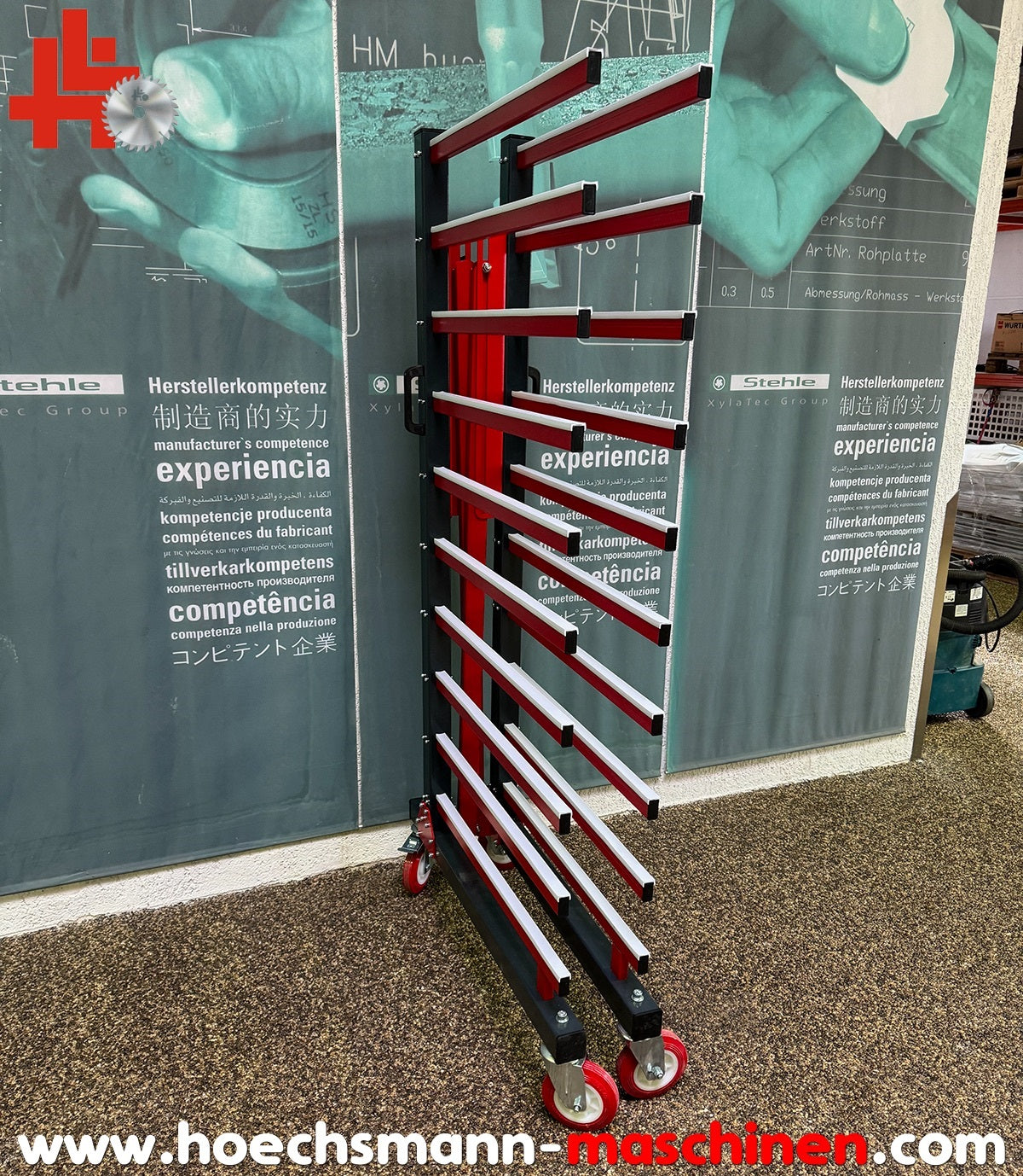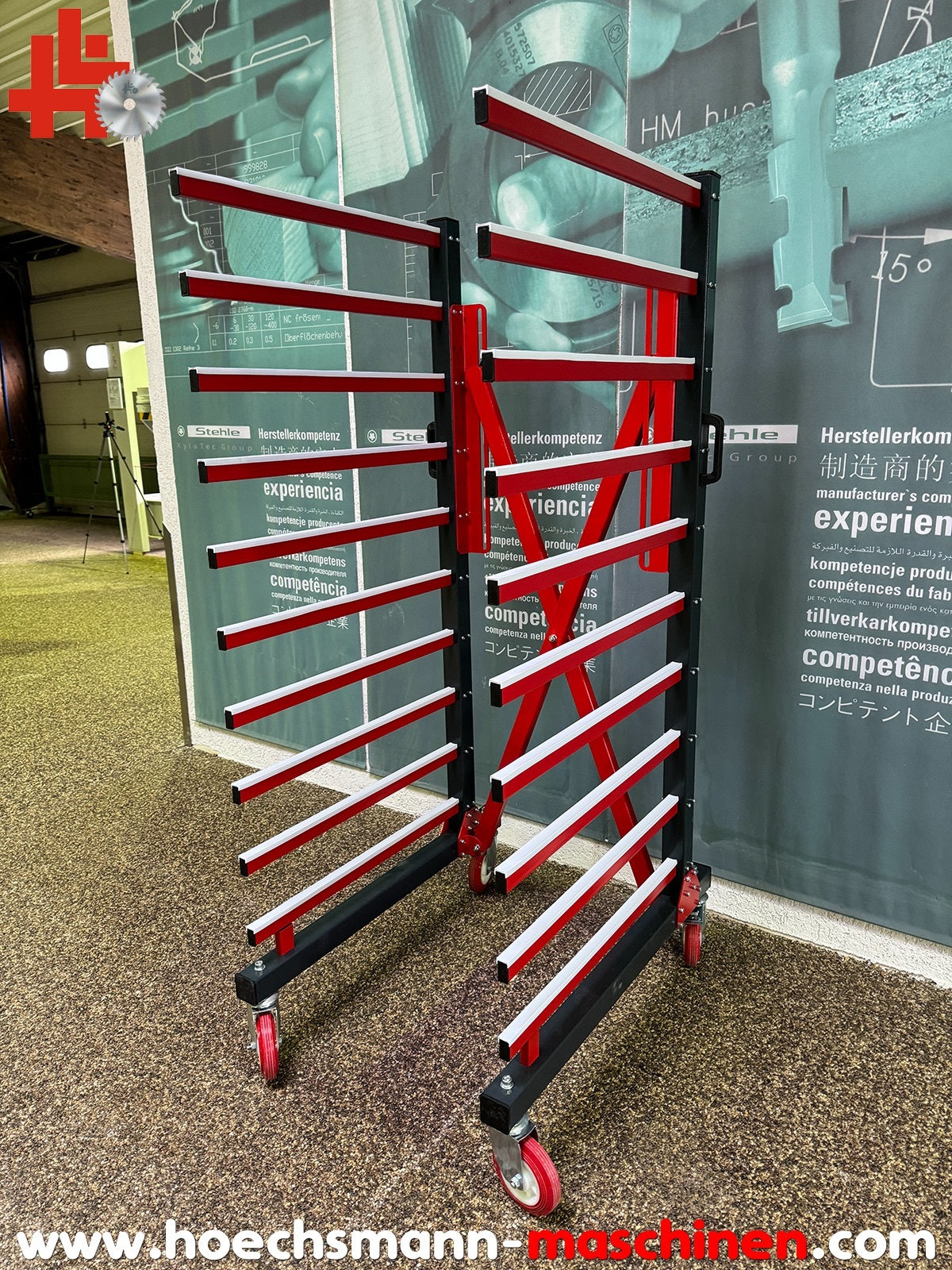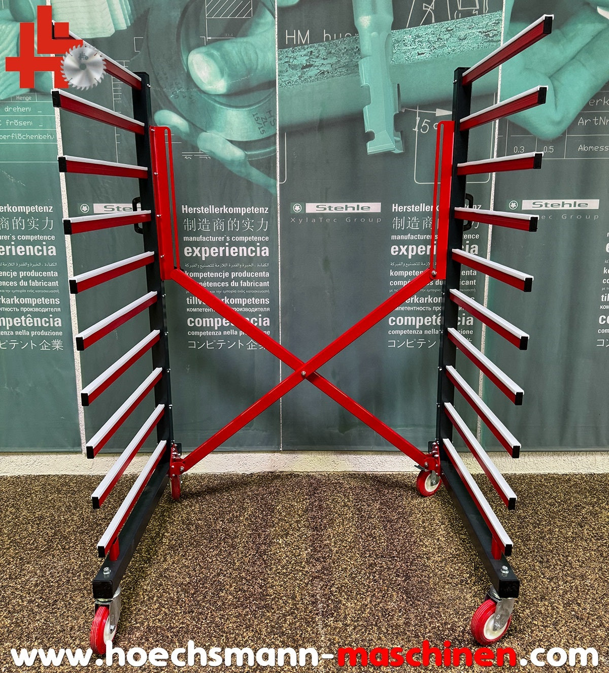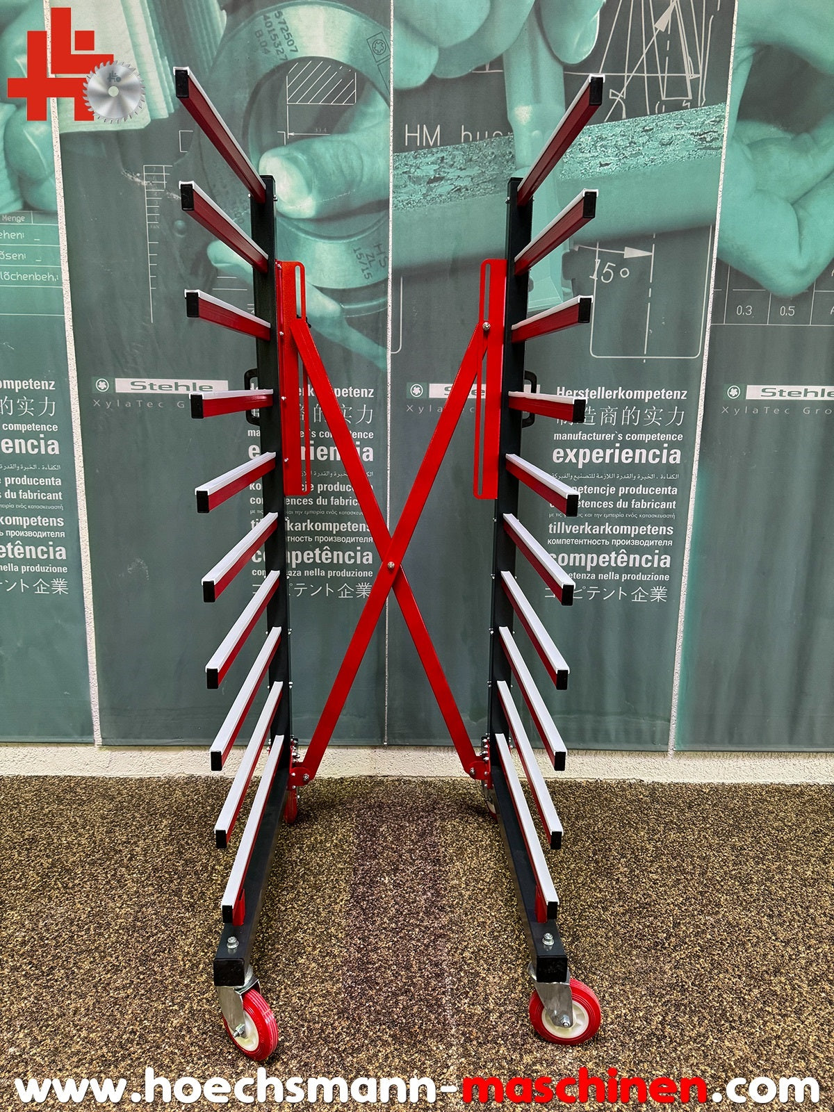 Lacktrockenwagen Tragarmwagen 10 M, Neugerät, 2x 10 Auflagen mit 780 mm Tiefe, vier 360° Rollen - davon 2 gebremst, ausziehbar von 360 auf 1.310 mm, vertikaler Abstand zwischen den Auflagen 130 mm