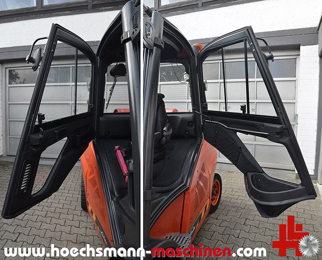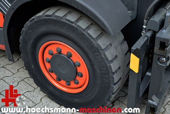 CE Zeichen, 4 Zylinder VW Motor mit Gasantrieb, Hydrostatgetriebe, Hubkraft 5.000 kg, Hubhöhe ca. 5.365 mm, Durchfahrhöhe ca. 2.650 mm, Breite 1.400 mm, Länge ohne Gabeln ca. 3.000 mm, Gabellänge ca. 2.000 mm, 7.280 kg Leergewicht, 55 kW Motor, Triplexmast mit Freihub und Freisicht, vollhydraulische automatische Steuerung über 3 Pedale, (vorwärts, stopp, rückwärts) stufenlose Geschwindigkeit, mit hydraulischer Klettereinrichtung (Bordsteine), Vorderradantrieb, Sicherheitsdach, Vollkabine mit Heizung und Scheibenwischern vorne und hinten und oben, Sitzheizung, Komfortsitz mit Luftfederung, hydraulischer Seitenschieber und Zinkenverstellung, Servolenkung, extrem wendig, Blinker vorne und hinten, Beleuchtung vorne und hinten, verstellbar LED Arbeitsscheinwerfer am Dach vorne und hinten, orange Rundum-Warnleuchte, Lenkrad verstellbar, Innen- und Außenspiegel, Rückfahrtsignal, Fahrwegwarneinrichtung Linde BlueSpot™, werkstattüberholt, SE-Reifen, Topzustand